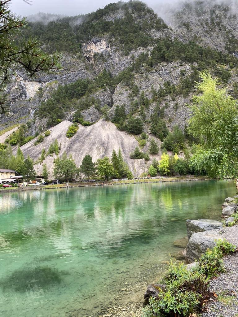 Ohne positive Überraschung waren die letzten Kilometer Richtung Nassereither Alm. Matschig, mit Kuhdung, das Hüpfen über nicht im Wasser versunkene Grasbüschel erinnerte uns stark an Super Mario (für die unter Euch, die das noch kennen).
