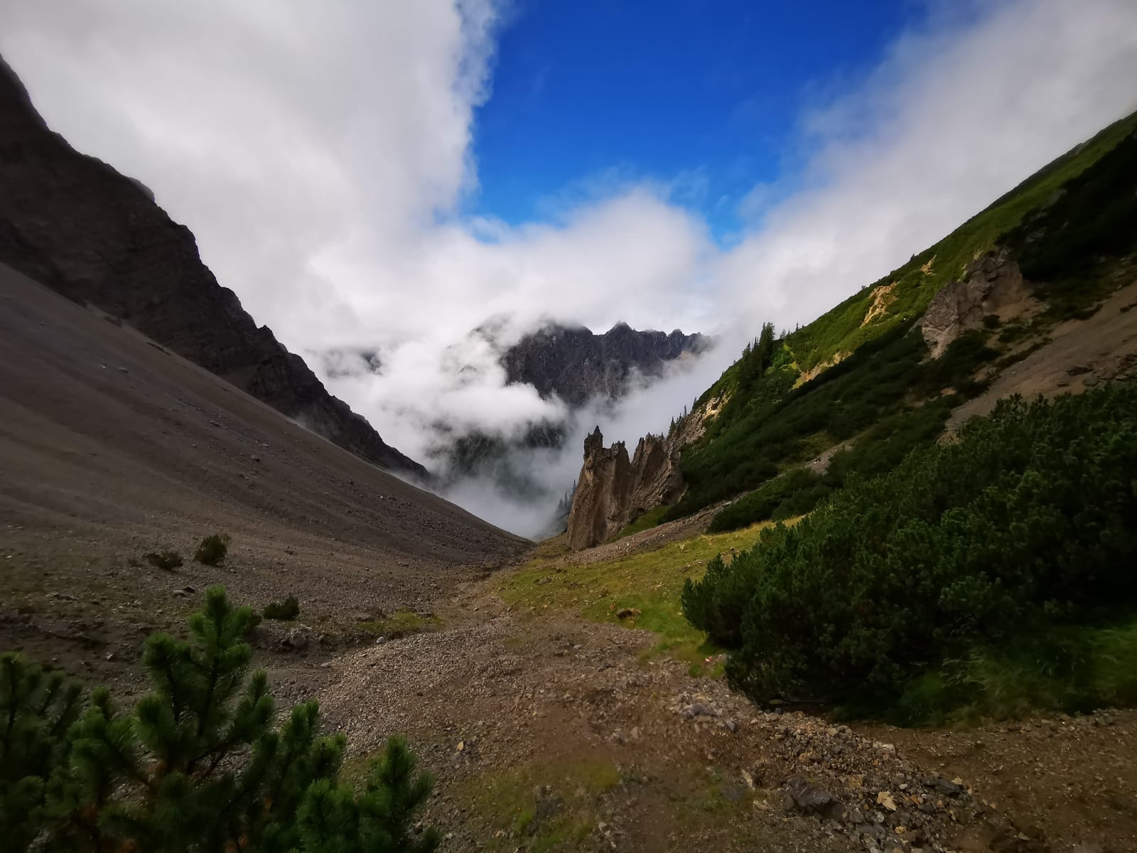 Da für Sonntag früh etwas weniger Regen vorhergesagt war, wollten wir dieses Zeitfenster nutzen und so kam uns die Frühstückszeit ab 6:30 sehr entgegen. Nach der Überraschung mit Lars konnten wir uns um 8:30 in Nassereith auf den Weg machen.