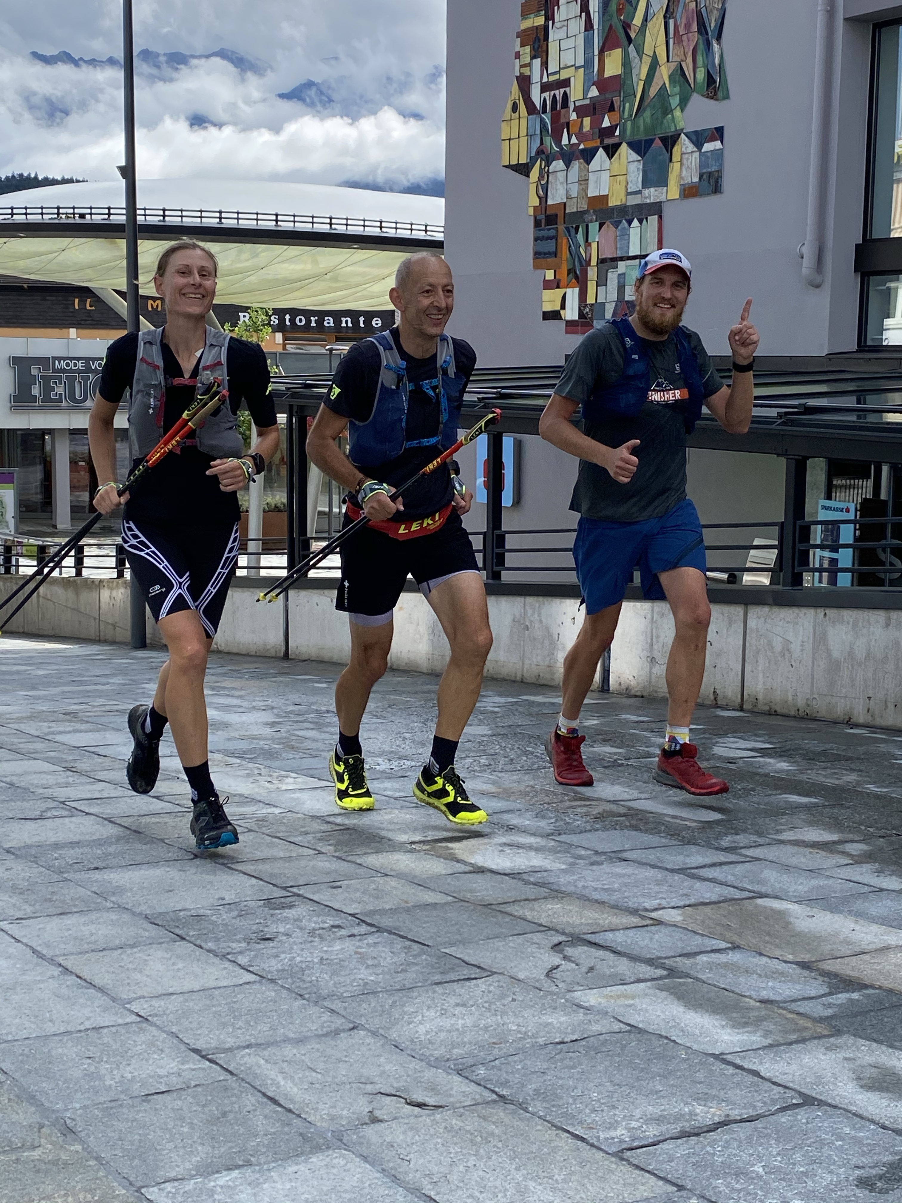 Mit jedem Meter, dem wir Imst näher kamen, wurde es auch wärmer und statt glammen Fingern war es uns jetzt auf einmal fast zu warm; zumindest als es in Imst wieder bergauf ging. Durch das Wohngebiet Hoch Imst und dann waren wir froh, dass es nur noch 2 km runter ins Ziel auf den Sparkassenplatz in Imst ging.