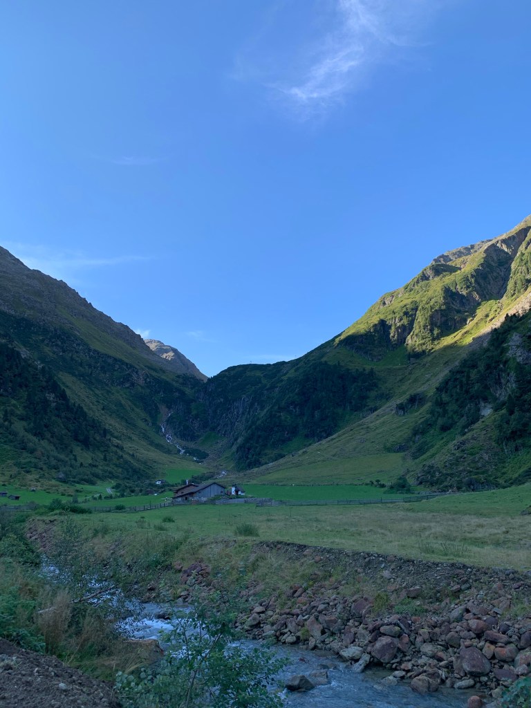 Ganz ungewohnt hatten wir ein Do-it-yourself Frühstück in der Unterkunft in Neustift und starteten nach kurzem Transfer ab der Tschanglair Alm in Richtung Nürnberger Hütte.